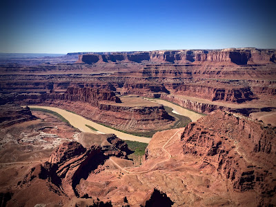 We started out driving to Deadhorse Point. Since it's a State park, you have to pay $10 to get in. There is no hike... you just go to the lookout point. That is all. Pretty expensive view. It's pretty though.