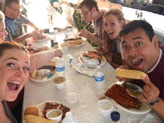 I will just say that the food was just as great and the line went by super fast (even though I was further back in line than I have ever been) because I had a blast talking to my friend (the one that lives 2 doors down that I was in the fashion show for), Josh. We just have a great time talking and laughing together. Even though he lives 2 doors down, I don't see him very often. So when we do run into each other leaving or coming home at the same time... we get excited and have a quick catch up. Anyway... we stayed very entertained chatting in line and we had our food in no time. Another great year at the Salmon Supper. If I am in town, I'm sure I will go again next year.